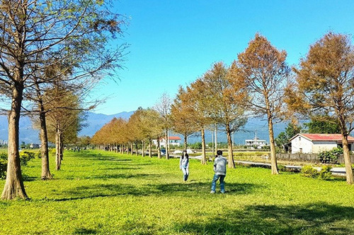 三星鄉落羽松,位於安農溪畔安農溪上游北岸,溪畔規劃自行車道,沿途大道兩側上種植了約200顆落羽松,翠綠草地配上一旁清澈的溪流,相當美麗壯觀。
